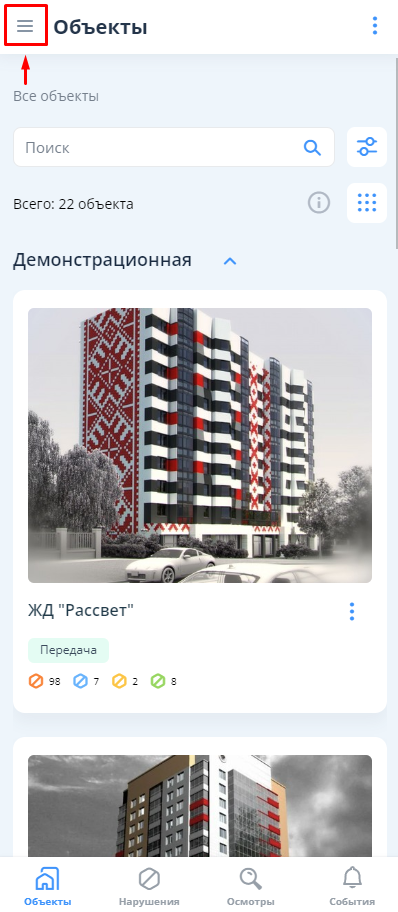 Для перехода в журнал автономных действий необходимо открыть основное меню и перейти на страницу профиля пользователя по клику на иконку пользователя.