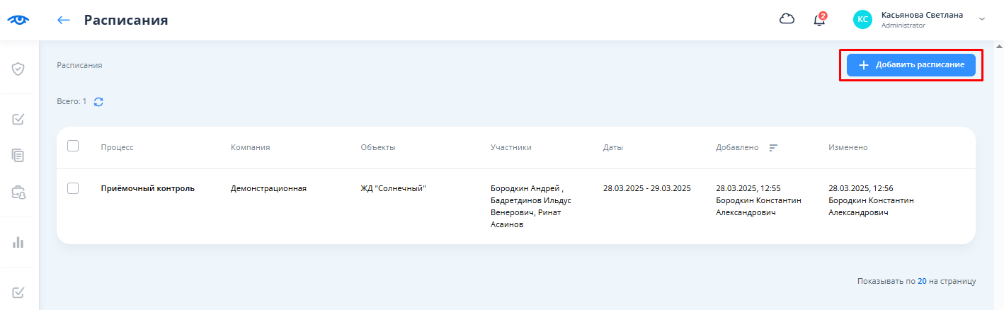 Page: Инструкция для Администраторов по функционалу раздела "Расписания"
