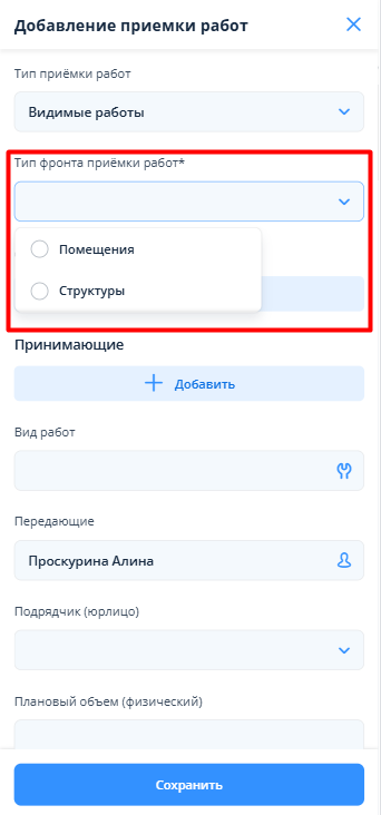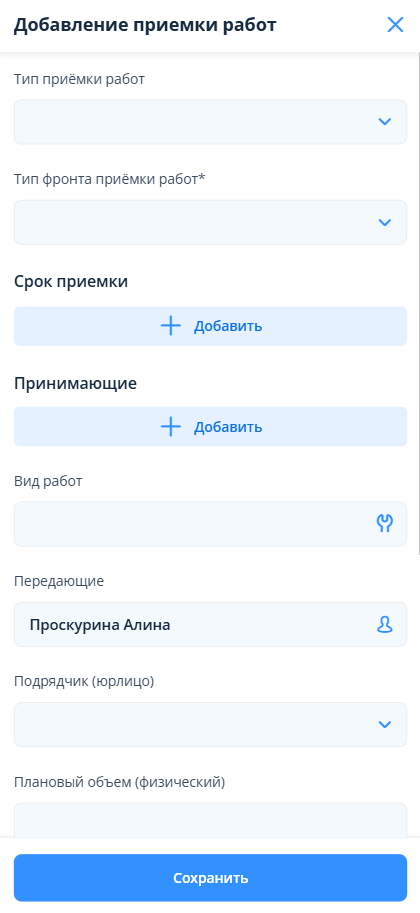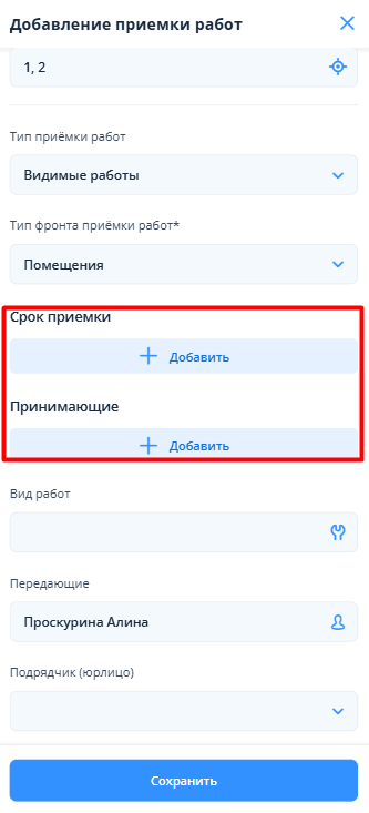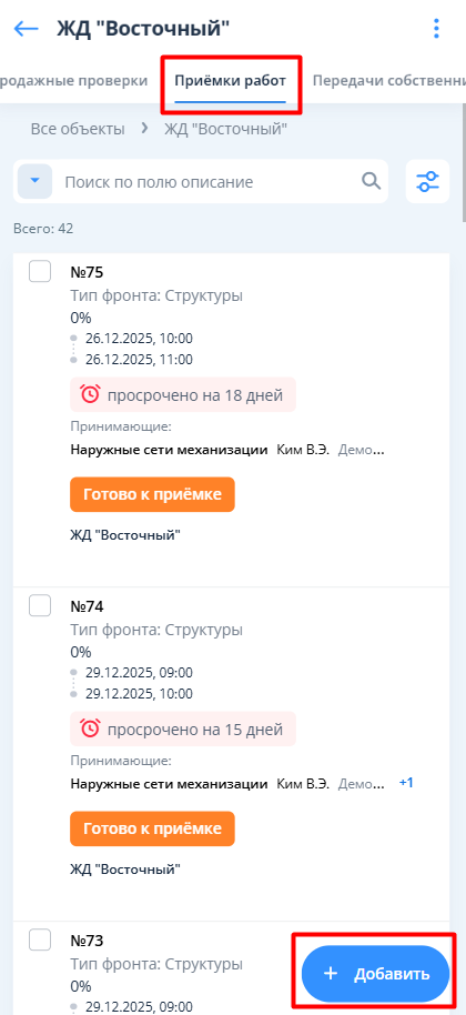 Page: Инструкция по созданию приемки работ (мобильная версия)