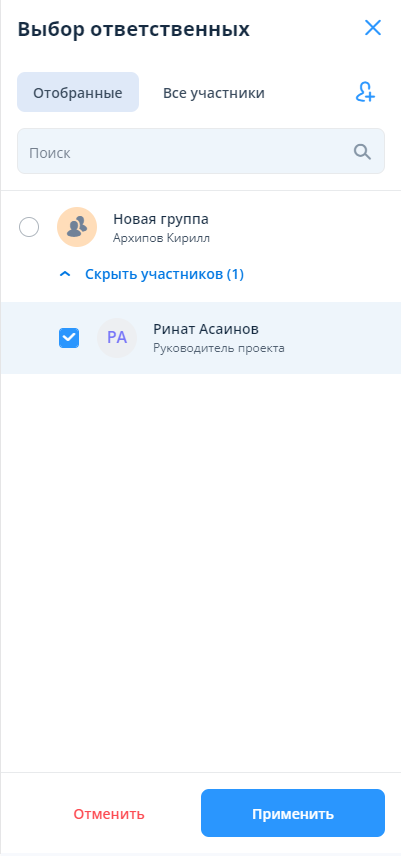Ответственные с возможностью переделегировать и просмотреть историю делегирования;