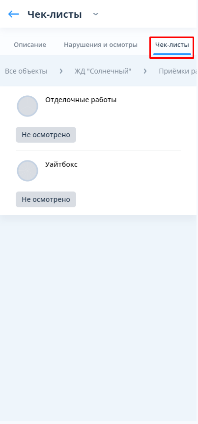Статус «Не осмотрено» стоит до начала заполнения чек-листа по умолчанию.