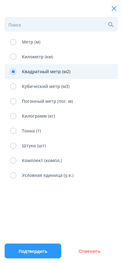 “Единица измерения физических объемов” - поле для выбора единицы измерения объёма работ из установленного справочника.
