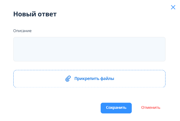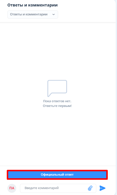 После завершения работ исполнителю необходимо зайти в “Ответы и комментарии” и нажать на кнопку “Официальный ответ”. Заполнить поле “Описание” и приложить фото для подтверждения устранения нарушения. После этого нарушению присвоится статус “На проверке”.