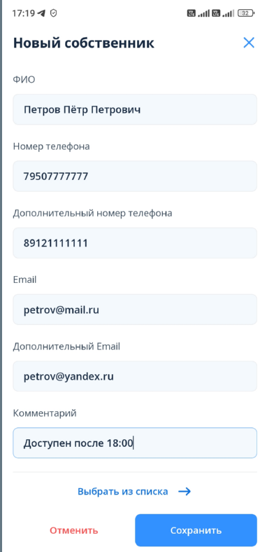Добавление собственника помещения