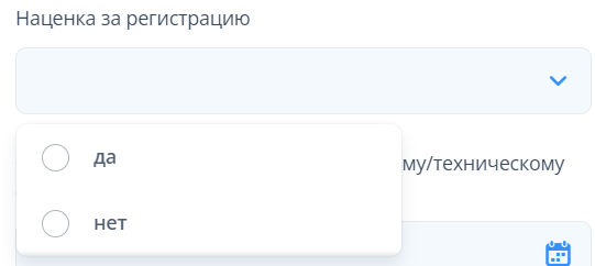Для поля «Наценка за регистрацию» доступны варианты «да», «нет».