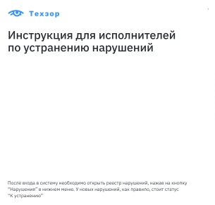 После входа в систему необходимо открыть реестр нарушений, нажав на кнопку “Нарушения” в нижнем меню. У новых нарушений, как правило, стоит статус “К устранению”.