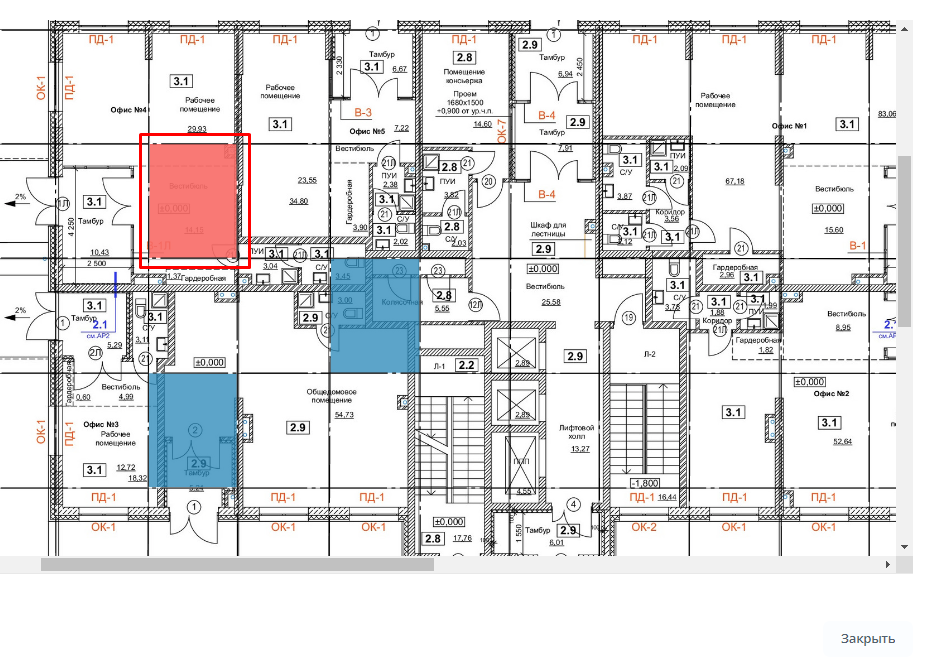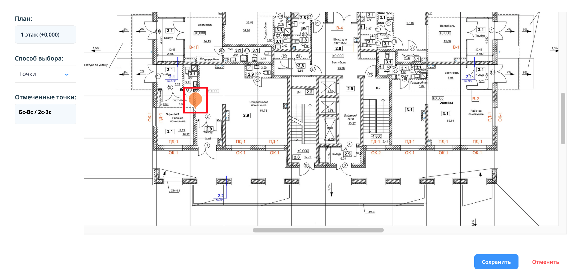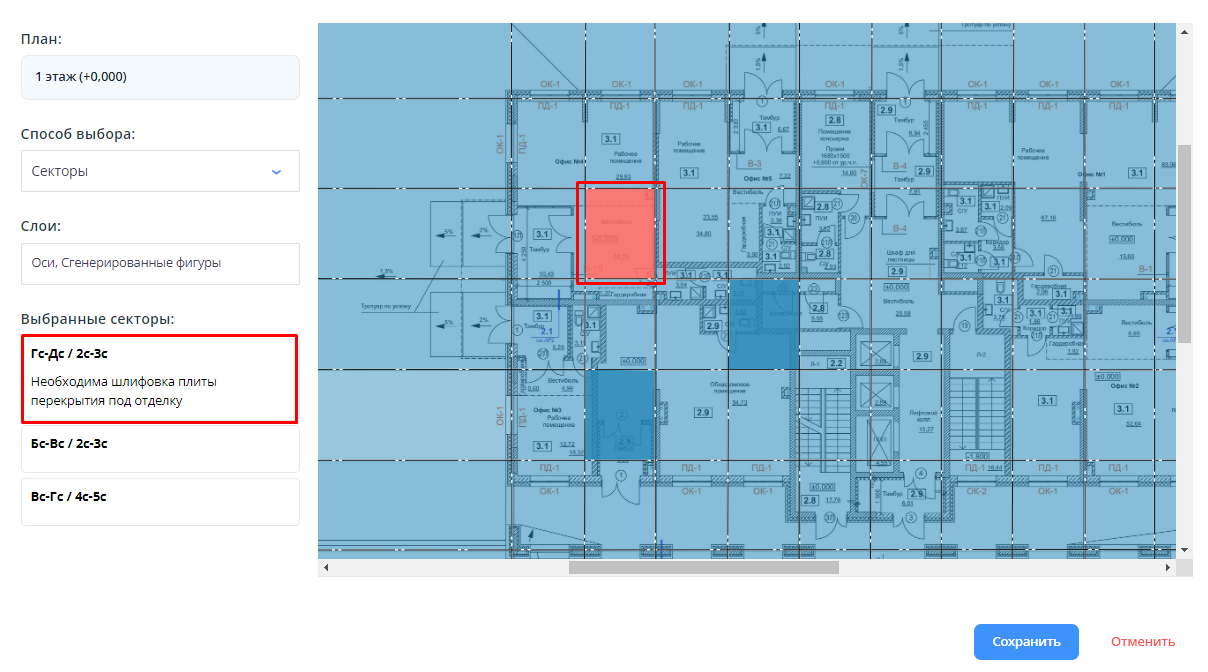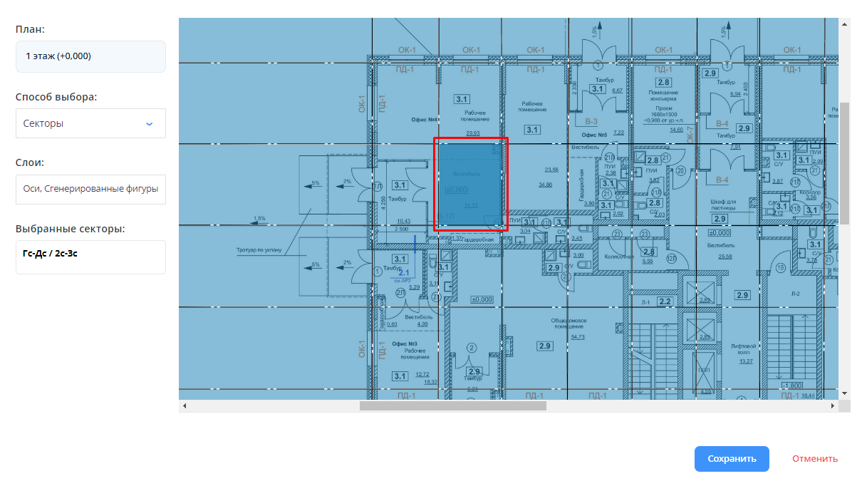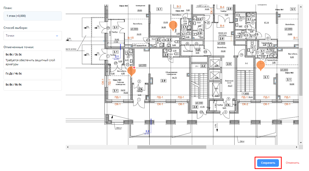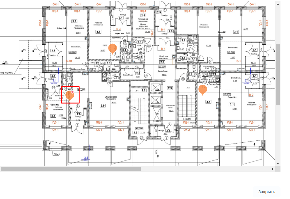 3. Откроется план этажа с отмеченными точками/секторами.